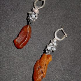 Ohrringe mit Silberverzierung und naturbelassenen cognac-farbenem Bernstein.